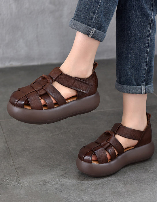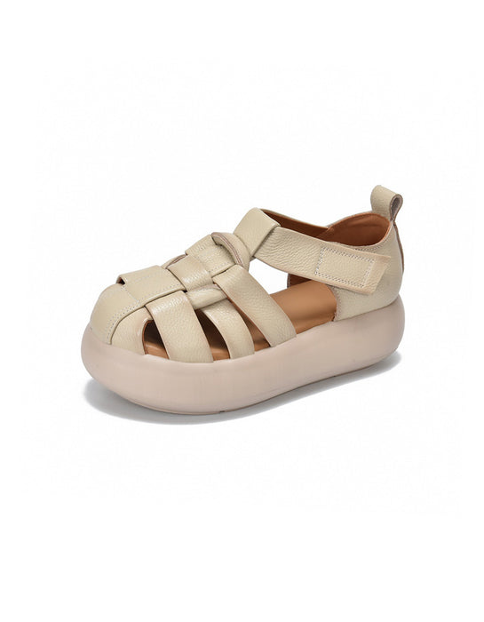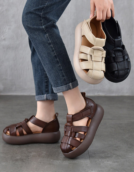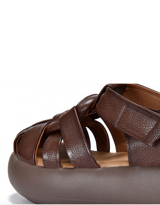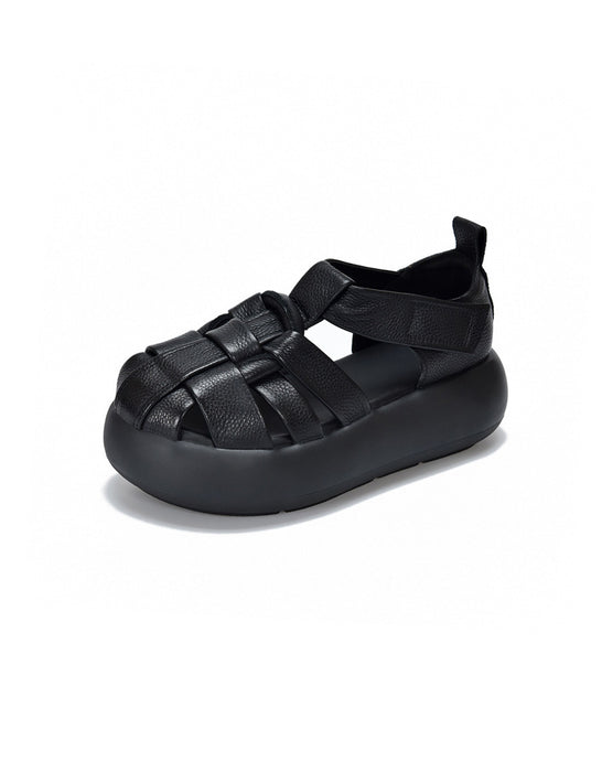 Wide Toe Box Leather Woven Platform Fisherman Sandals