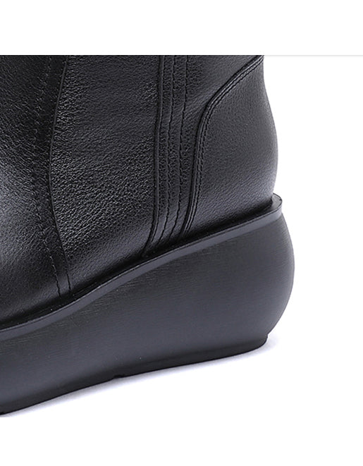 Botas de cuña retro de media pantorrilla hechas a mano para invierno y otoño