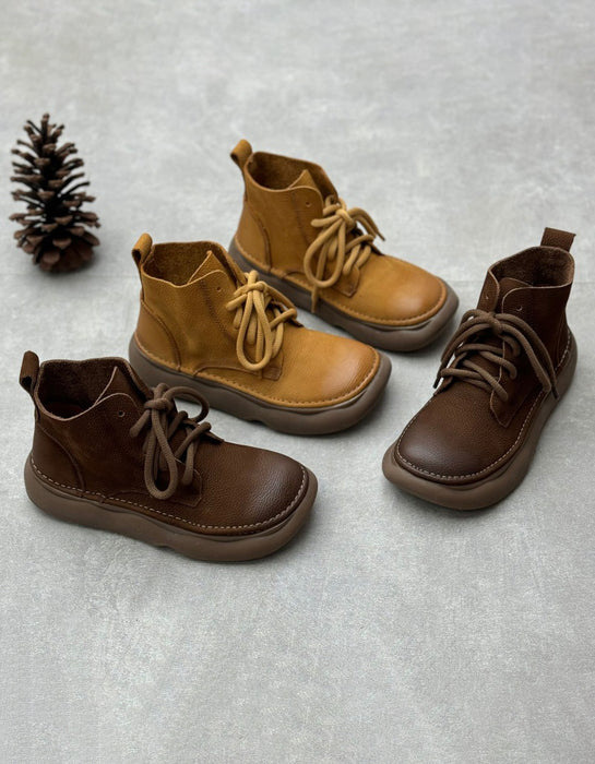 Botas retro de punta ancha, cómodas y con suela blanda para invierno y otoño