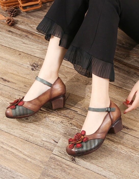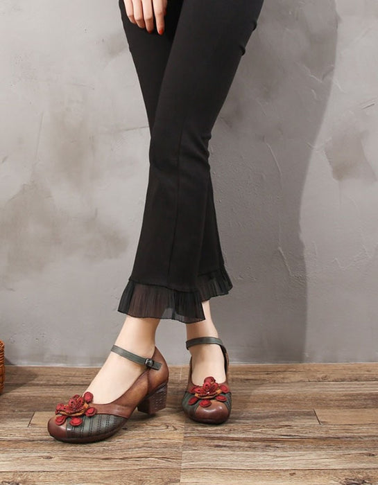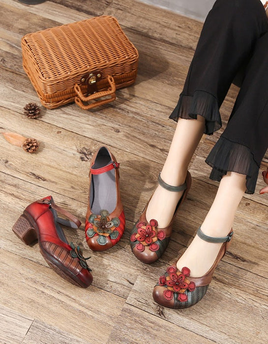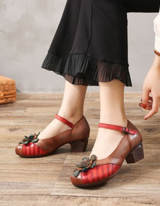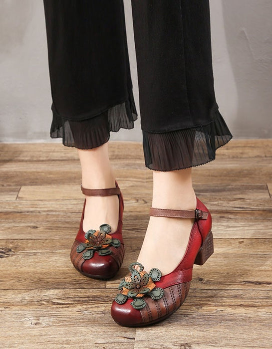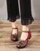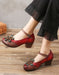 Zapatos de tacón grueso estilo retro para mujer, color rojo