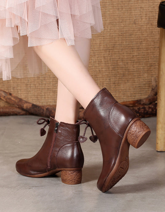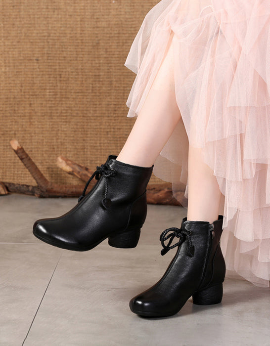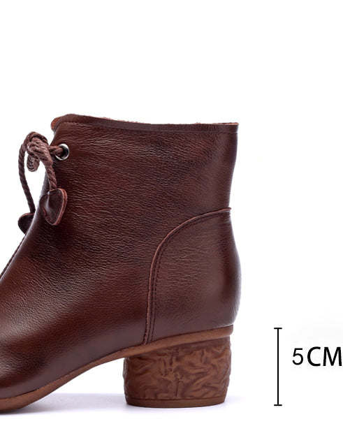 Botines gruesos de cuero estilo retro para mujer