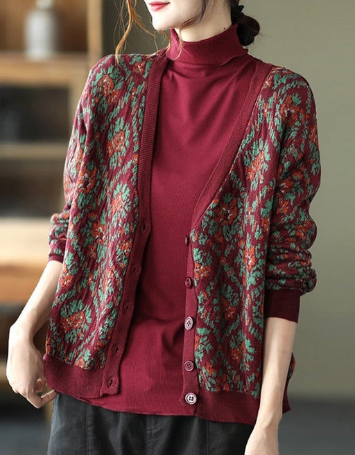 Afficher tous les détailsCardigan ample à col en V imprimé rétro