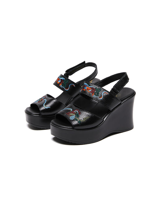 Afficher tous les détailsSandales de plage compensées en cuir à fleurs d'été