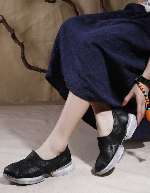 Afficher tous les détailsChaussures épaisses vintage en cuir faites à la main pour le printemps