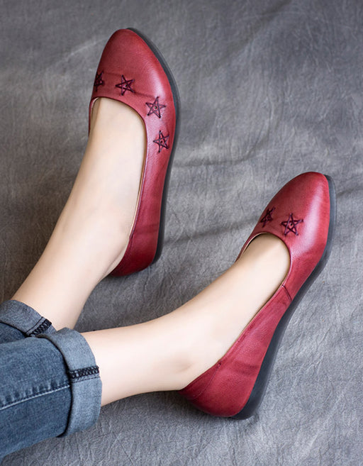 Escarpins plats rétro à bout pointu découpés en cuir véritable