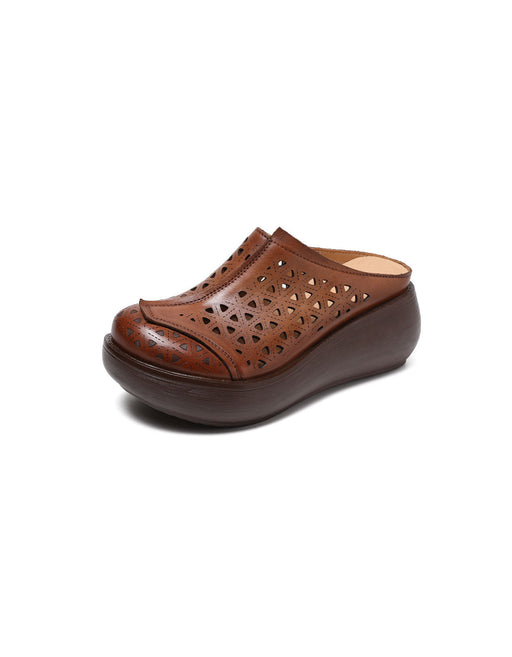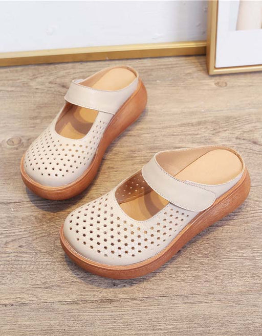 Afficher tous les détailsSandales compensées en cuir à bout large pour l'été Hoolow
