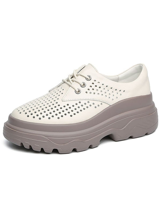 Afficher tous les détailsChaussures à lacets en cuir à plateforme pour femmes, beige