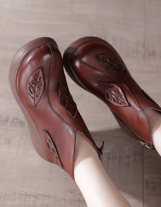 Bottes compensées rétro imperméables à décor de feuilles