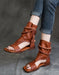 Sandales plates d'été à bout ouvert en cuir souple faites à la main