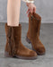 Genuine Leather Winter Autumn Side Tassel Mid-calf Boots