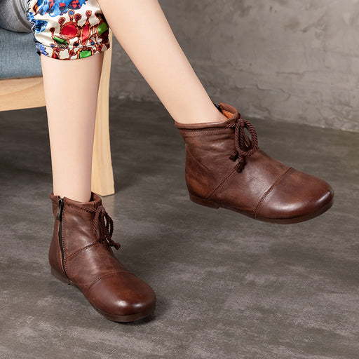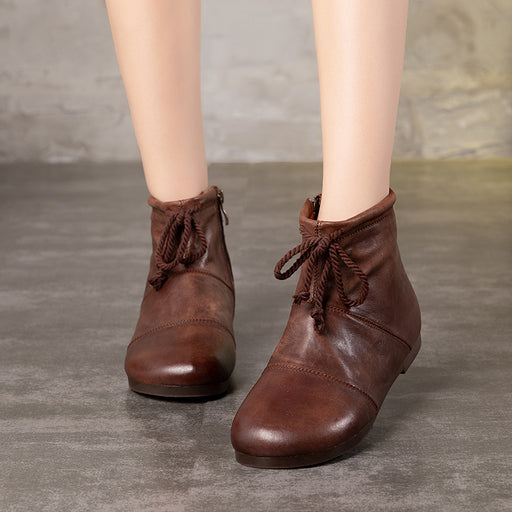 Bottes courtes de style rétro de couleur brossée pour femmes, bottes de loisirs tendance Matière principale : cuir de vache Type de talon :...