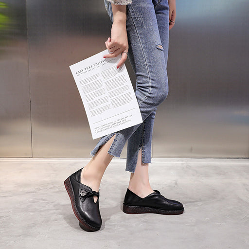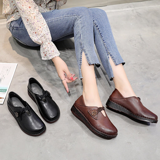 Chaussures plates de loisirs pour femmes de style rétro de couleur brossée Matière principale : cuir de vache Type de talon : Plat Matériau...
