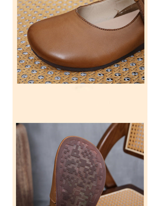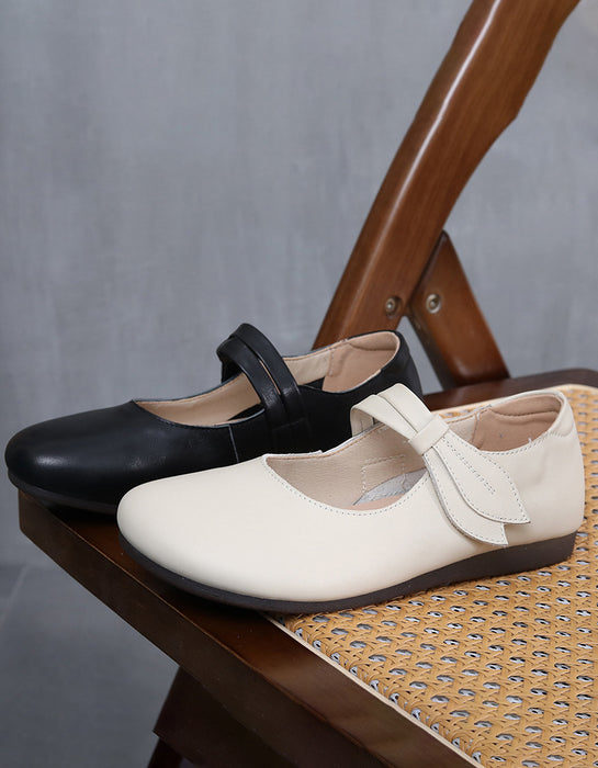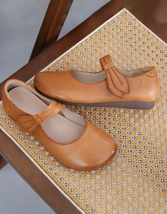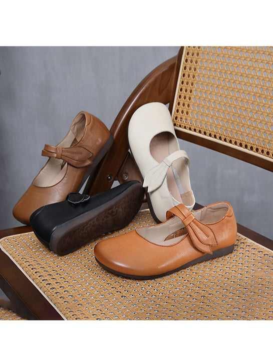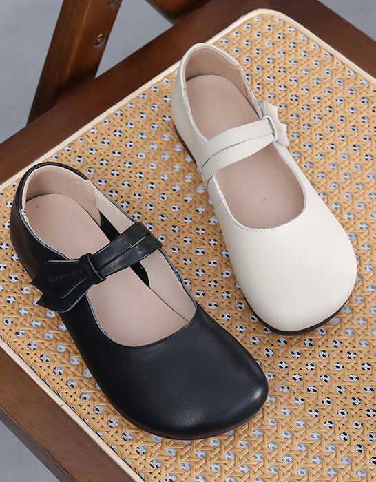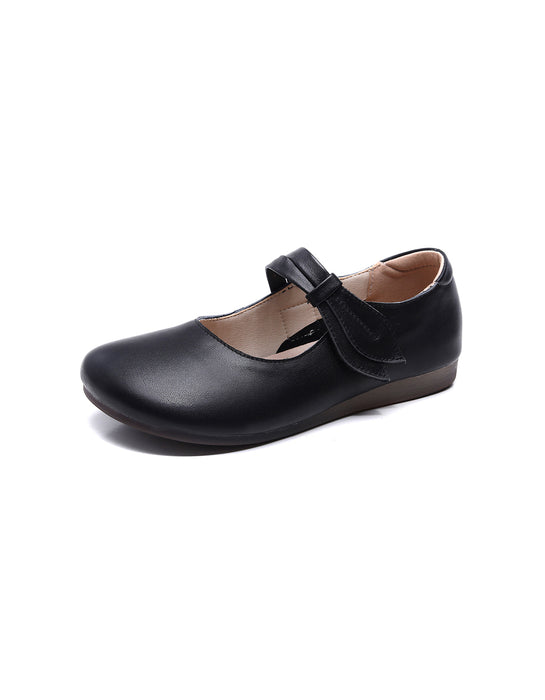 Chaussures plates rétro en cuir souple à bout rond de printemps