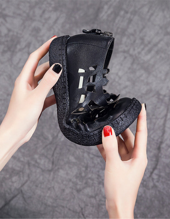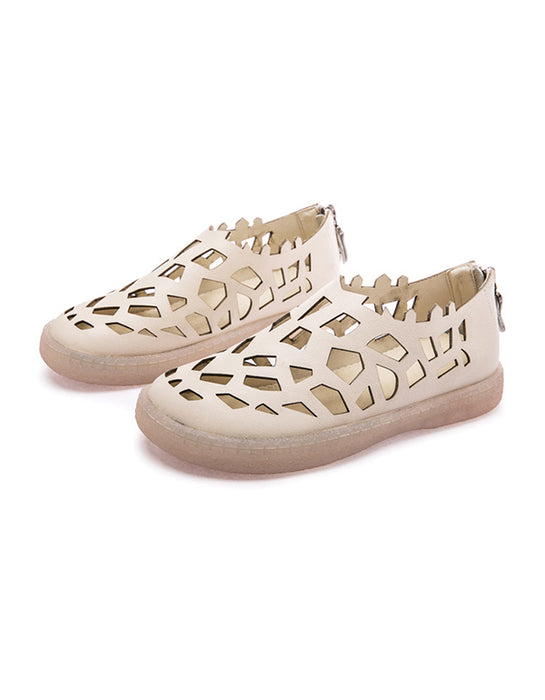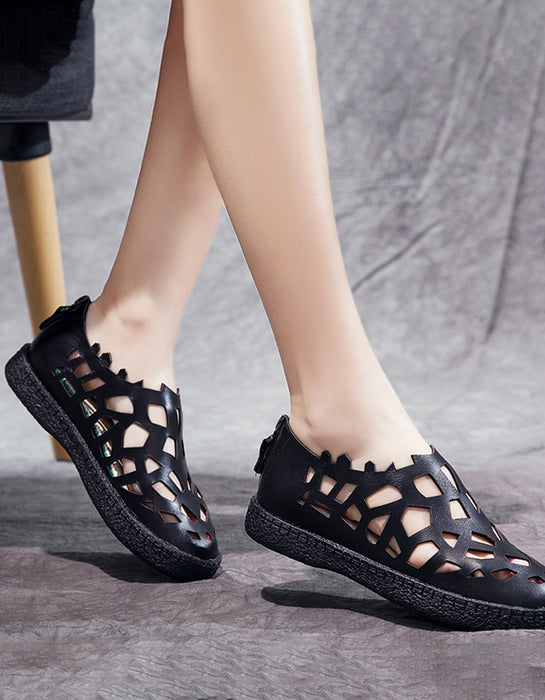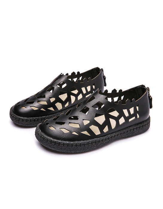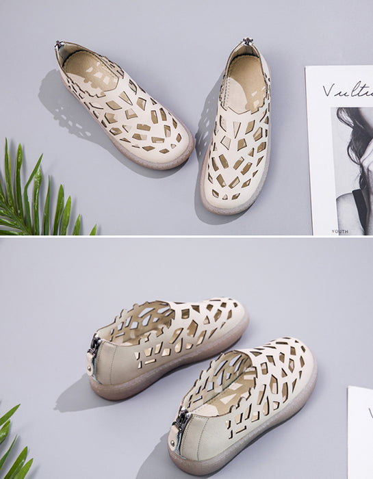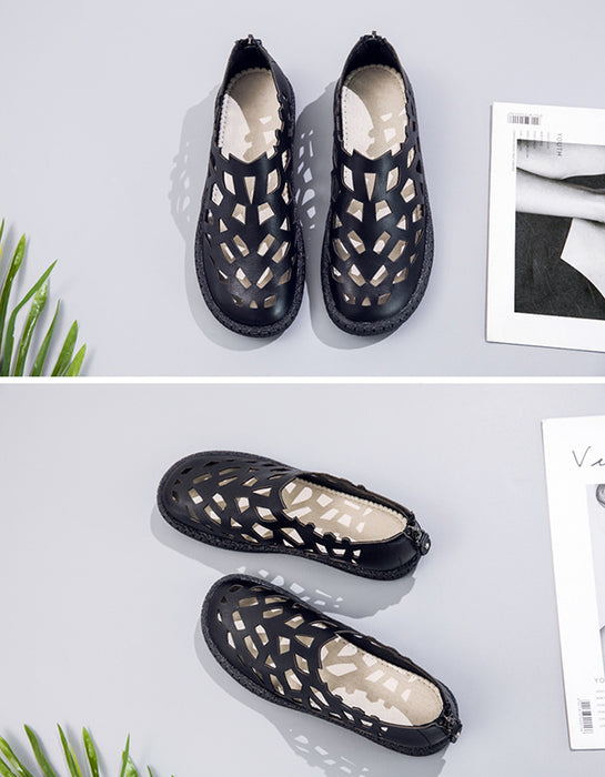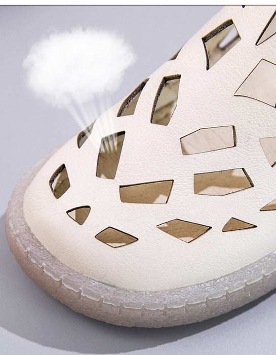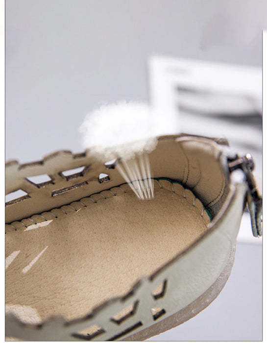 - Sandales creuses à semelle souple en cuir de vache pour femmes, chaussures de marche décontractées très confortables