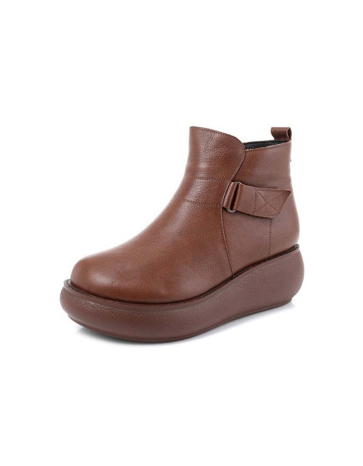 Afficher tous les détailsBottes compensées en cuir rétro automne-hiver pour femmes