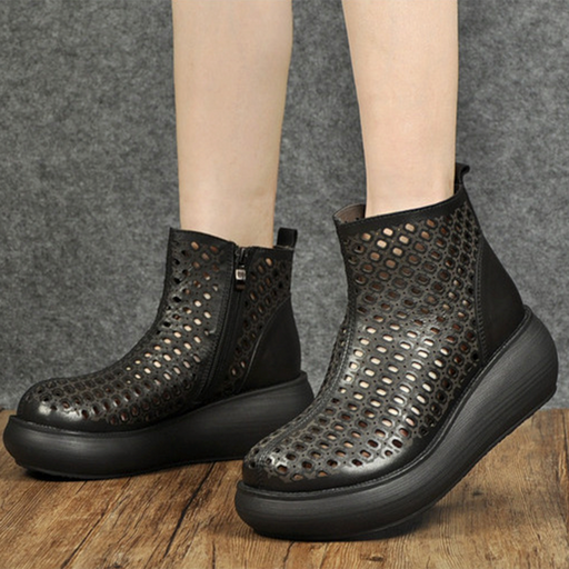 Bottes épaisses en cuir creuses rétro de printemps pour femmes