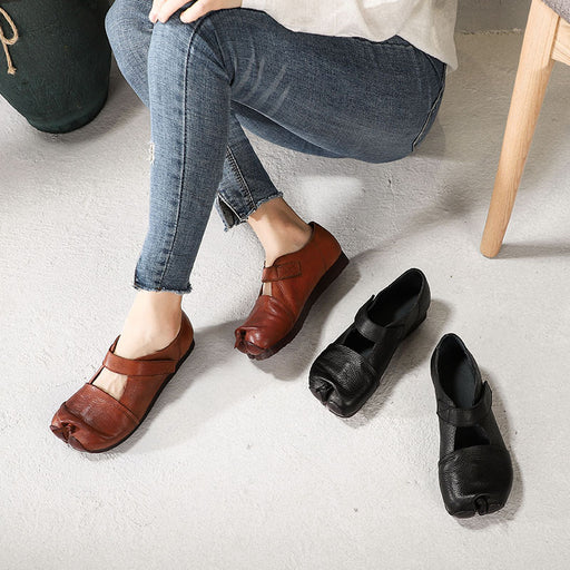 Chaussures confortables à bout fendu en cuir rétro de printemps