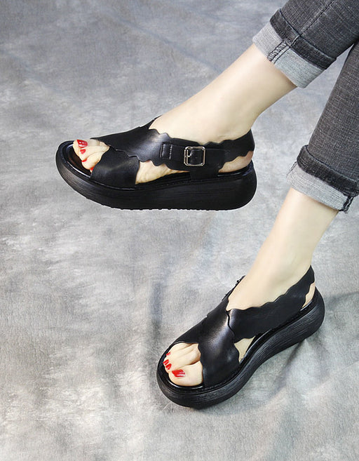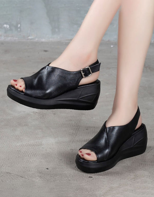Afficher tous les détailsSandales compensées rétro en cuir pour l'été