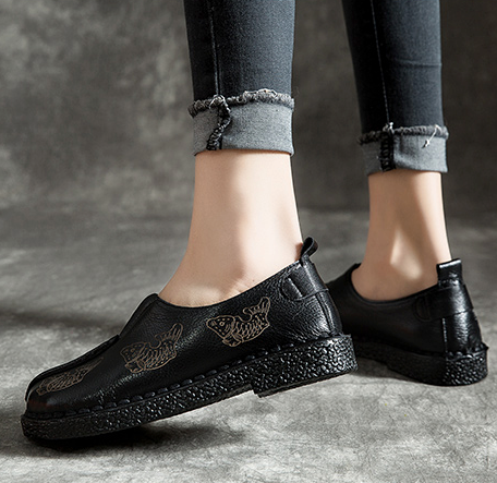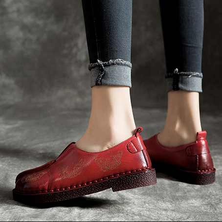 Chaussures plates rétro en cuir faites à la main en tendon de vache 35-43