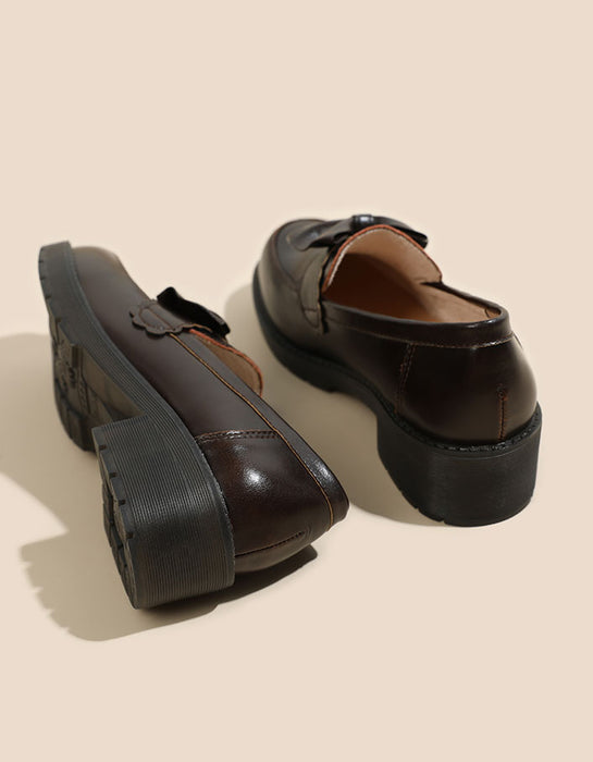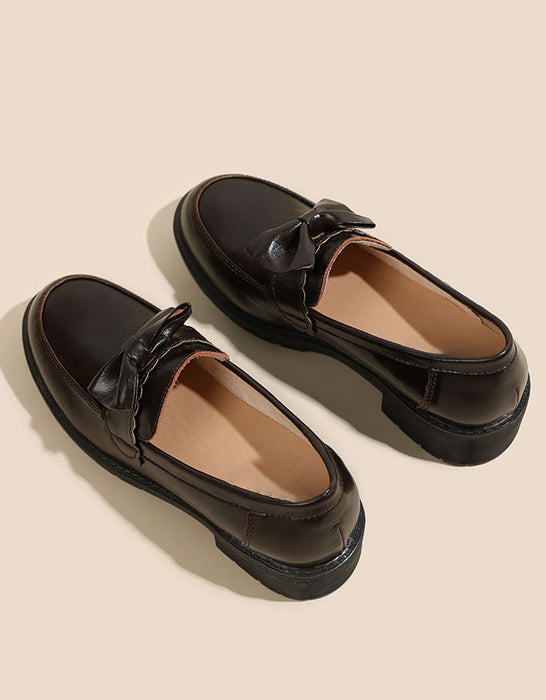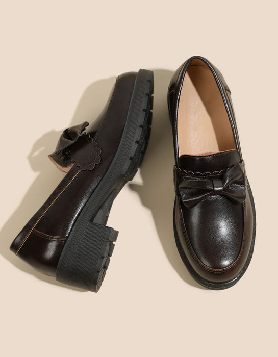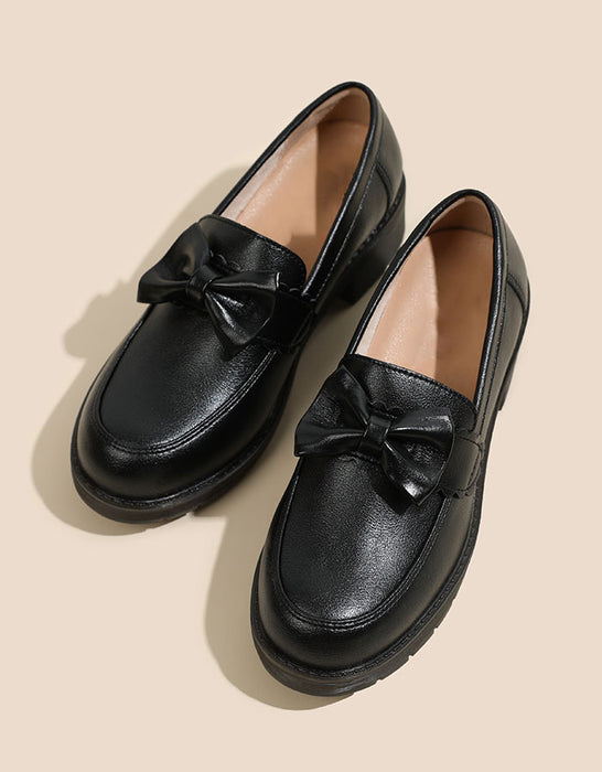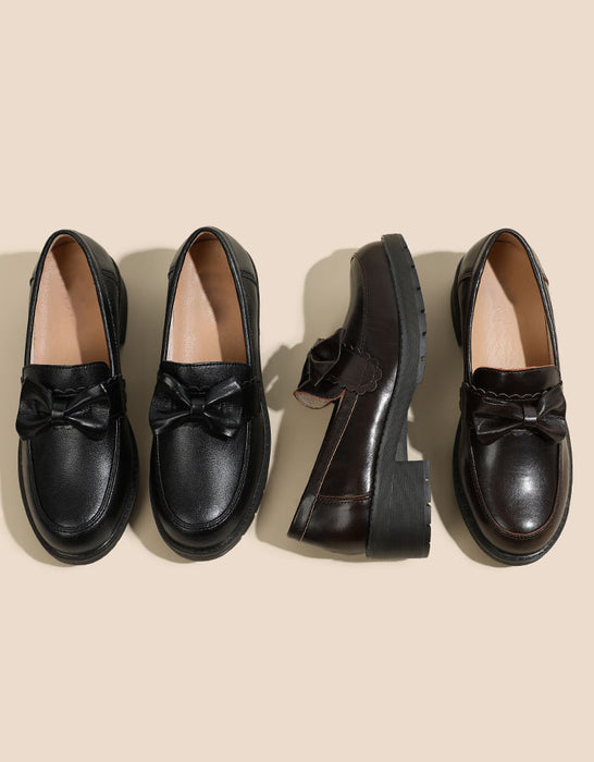 Mocassins à talon épais de style britannique avec nœud papillon