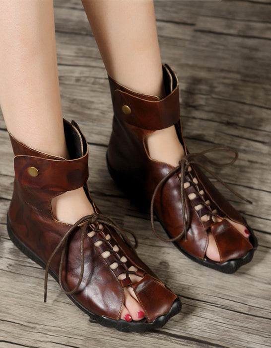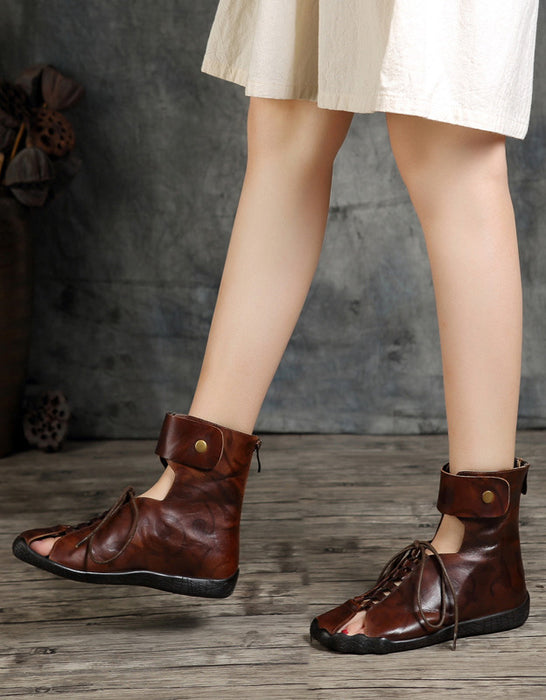 Sandales d'été en cuir découpées à la main de style rétro