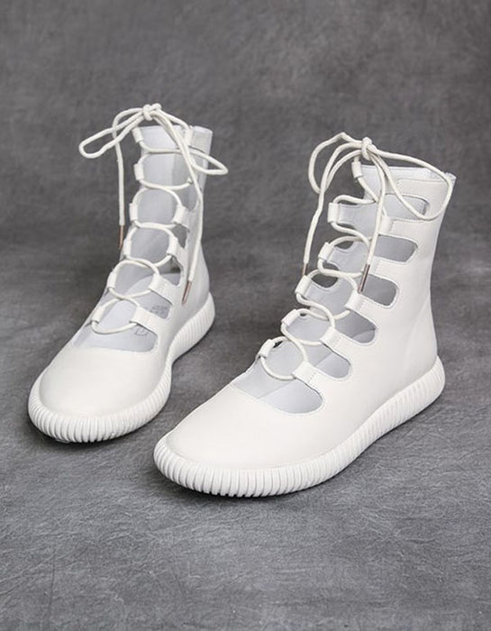 Bottes d'été rétro en cuir à lacets et découpes sur le devant