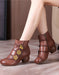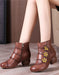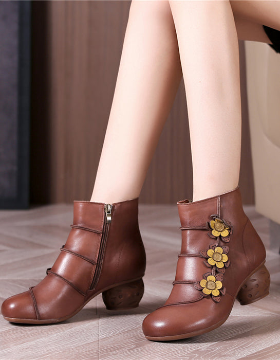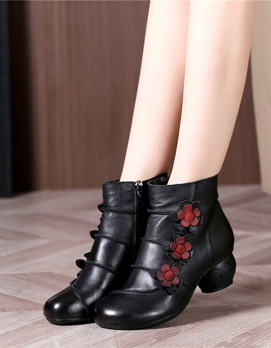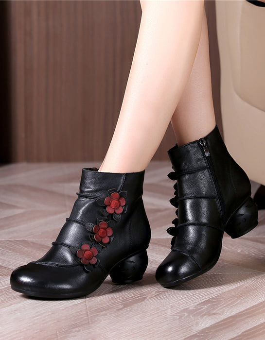 Bottes à talons épais rétro élégantes à fleurs latérales de style éthique