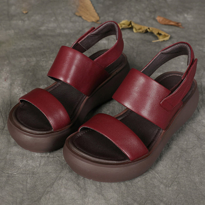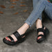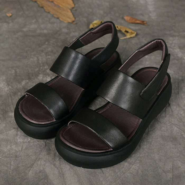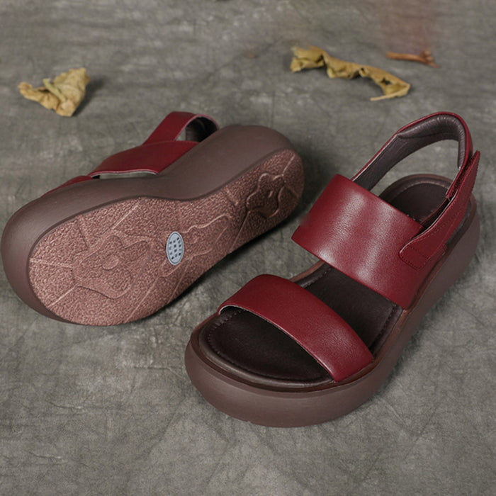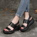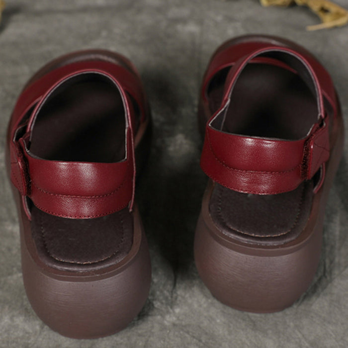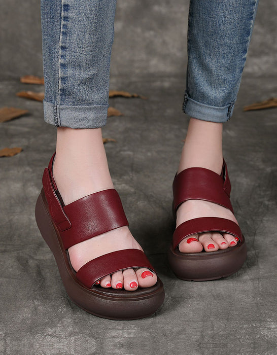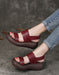Sandales compensées d'été rétro faites à la main avec bride arrière