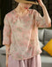 Summer Mid-sleeve Round Neck Embroidery Flower Shirts