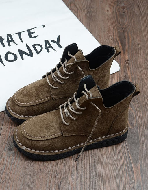 Bottes à lacets confortables et souples à semelles plates pour automne et hiver