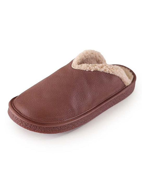 Mules d'hiver en peluche, pantoufles rétro en cuir