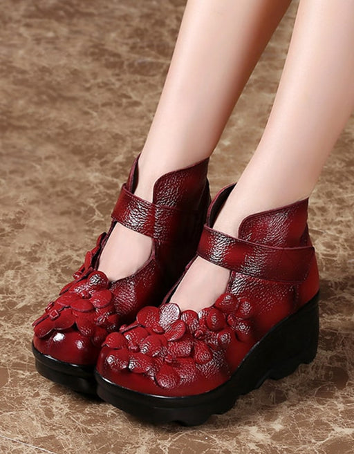 Chaussures à talons compensés rétro à fleurs de style ethnique