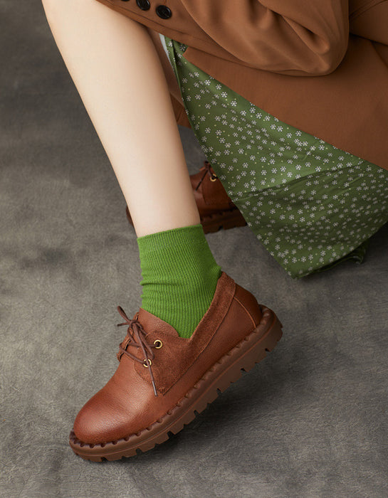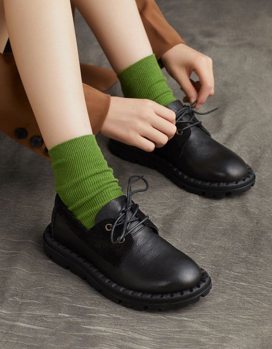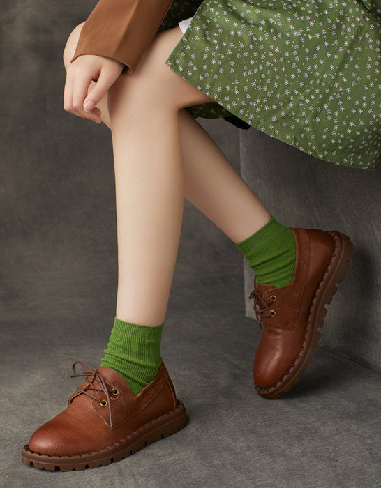 Chaussures plates confortables à lacets en cuir rétro faites à la main