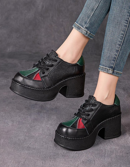 Afficher tous les détailsChaussures épaisses vintage en cuir faites à la main pour le printemps
