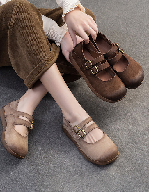 Chaussures de printemps confortables en cuir rétro pour femmes