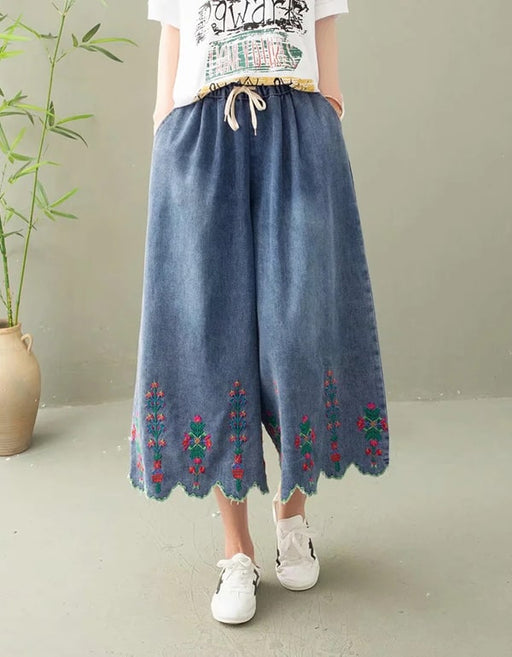 Pantalon d'été à jambes larges avec poches avant pour femme