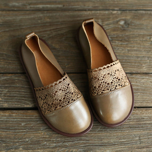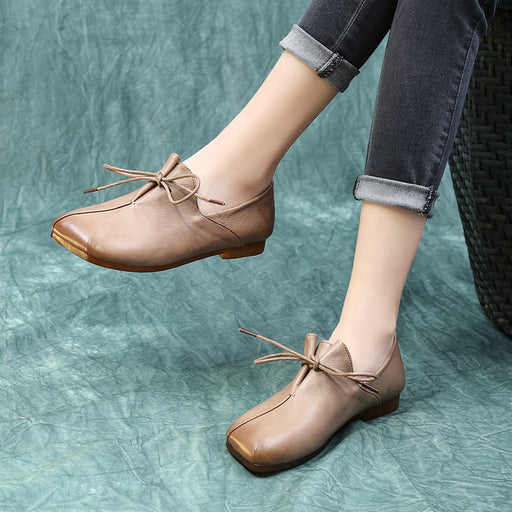 Afficher tous les détailsChaussures plates rétro en cuir vintage avec coutures tricotées