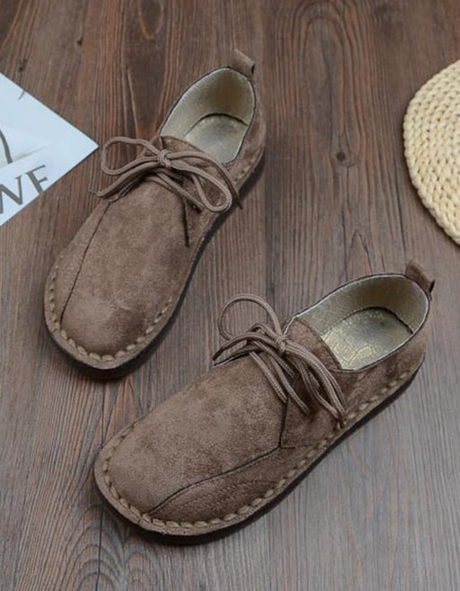 Afficher tous les détailsChaussures plates souples cousues à la main en daim à lacets pour femmes