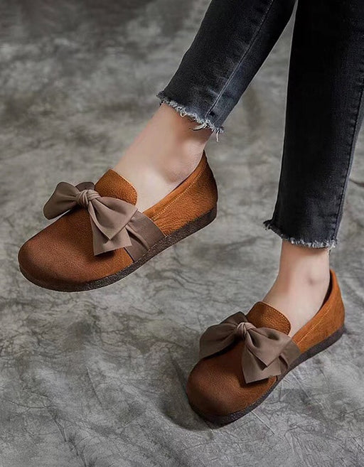 Afficher tous les détailsChaussures plates rétro en cuir souple à tête ronde et nœud papillon
