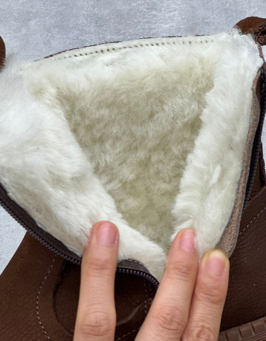 Bottes d'hiver confortables en cuir véritable à bout large avec fourrure