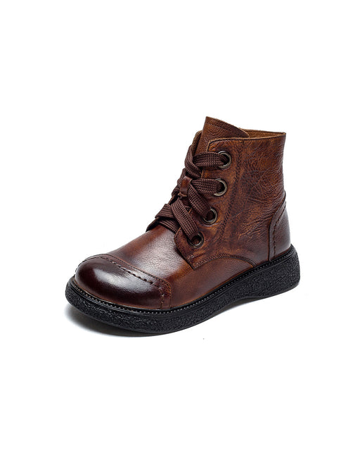 Bottes d'automne et d'hiver à lacets faites à la main avec tête ronde