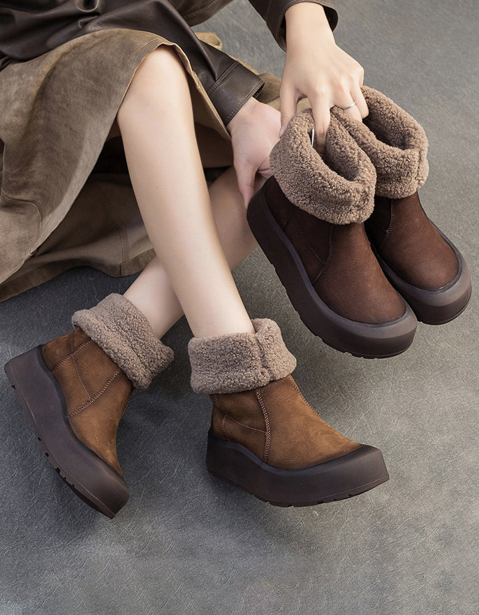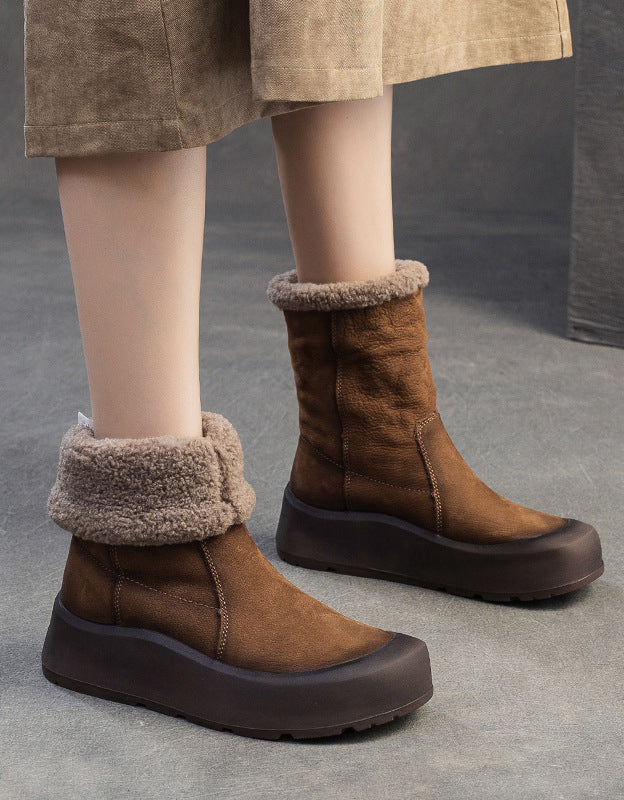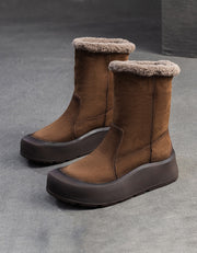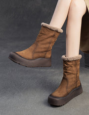 Bottes d'hiver en daim à bout large et fourrure faites à la main