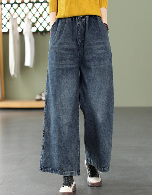 Afficher tous les détailsPantalon en denim ample à taille élastique pour le printemps