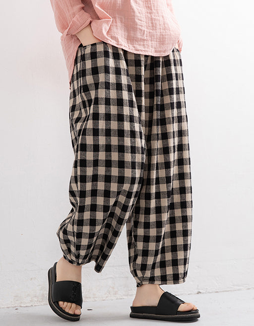 Un pantalon ample en coton et lin à carreaux, idéal pour les tendances estivales. Tenue d'été décontractée et ample, vous pouvez porter ce pan...