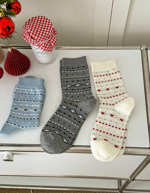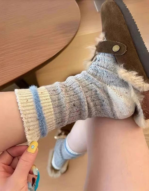Lot de 2 paires de chaussettes en peluche à rayures épaisses et à blocs de couleurs