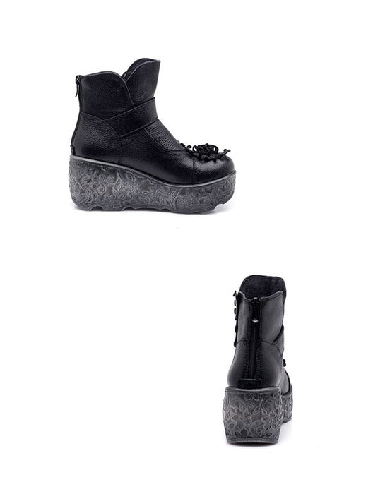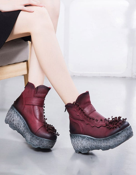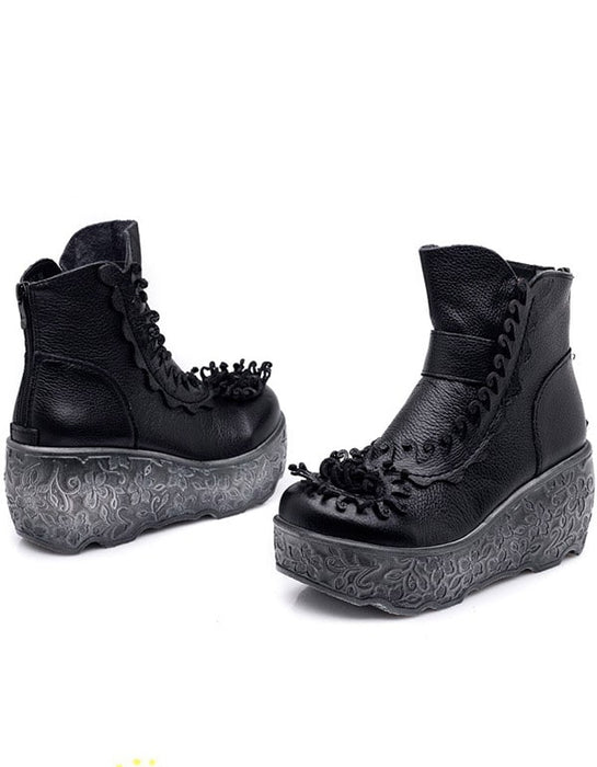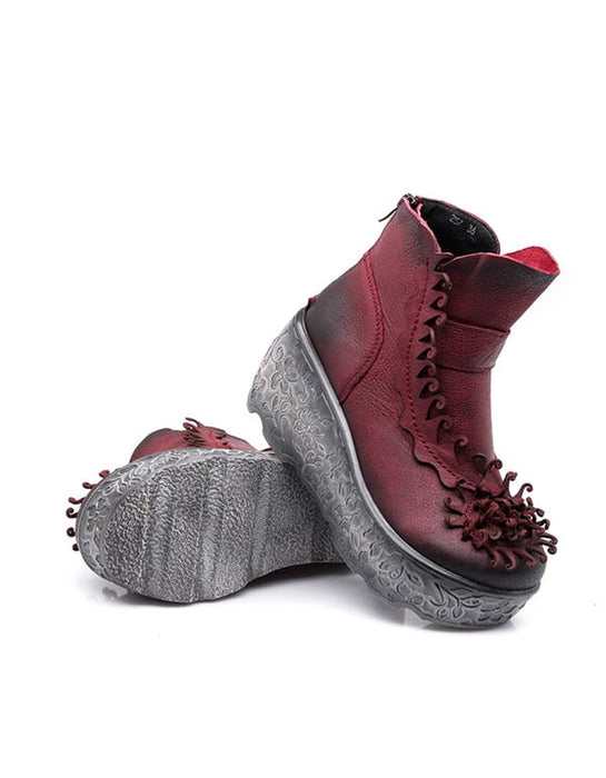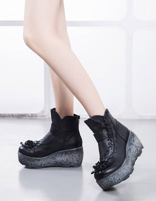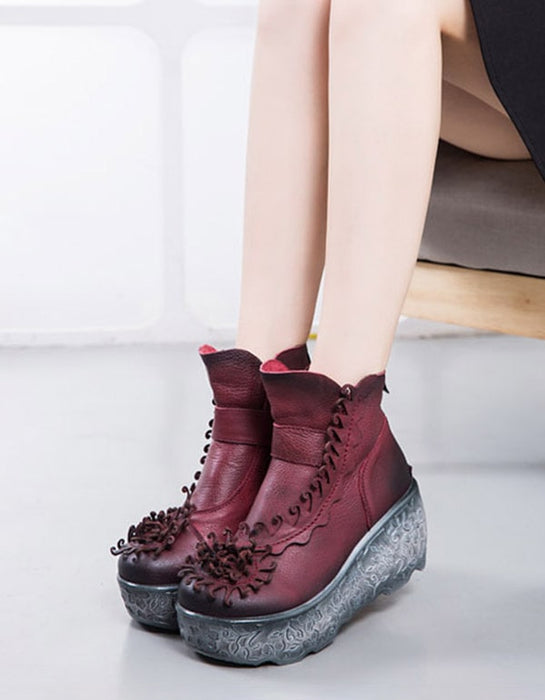 Bottes compensées rétro faites à la main avec des fleurs pour femmes