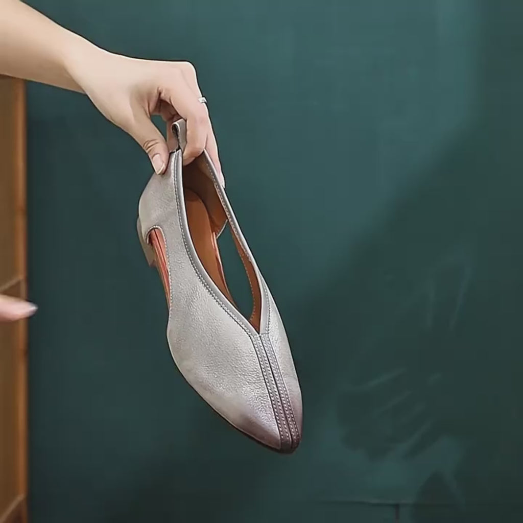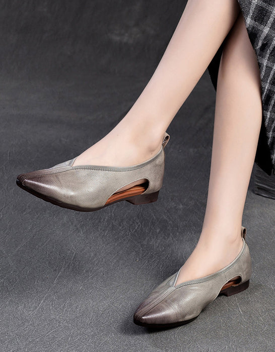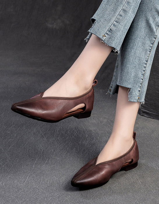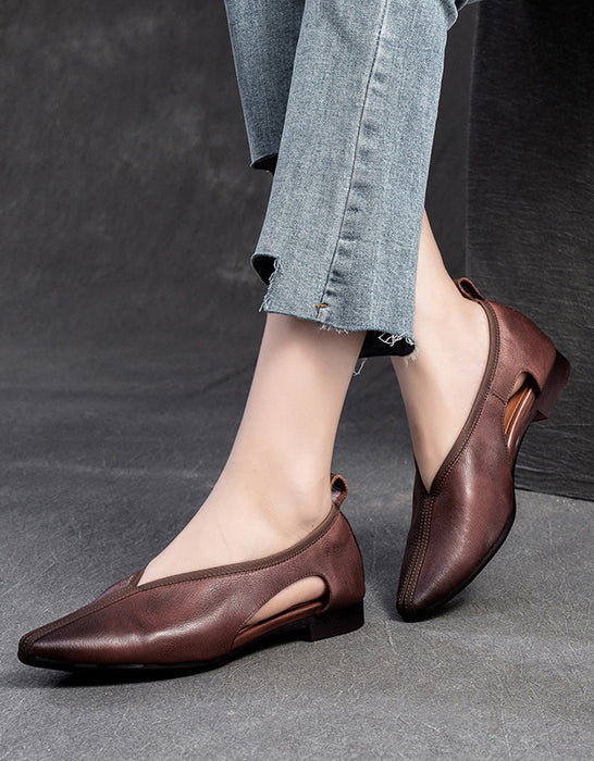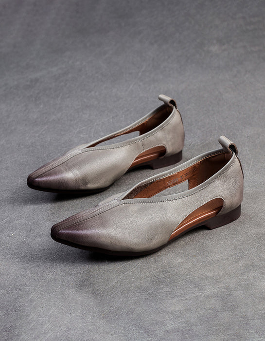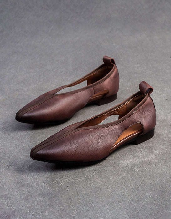 Escarpins plats rétro à bout pointu découpés en cuir véritable