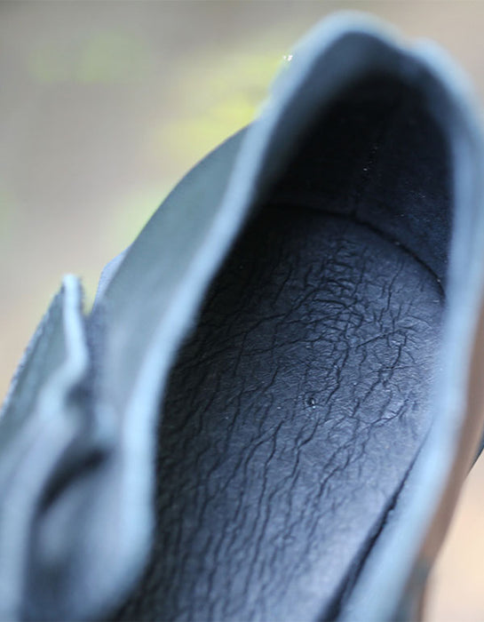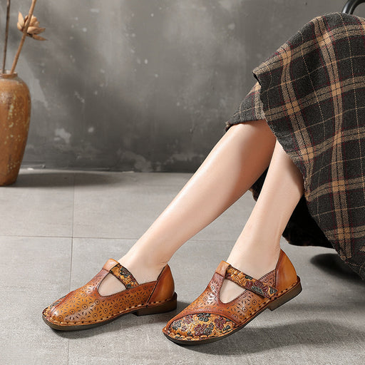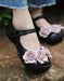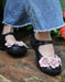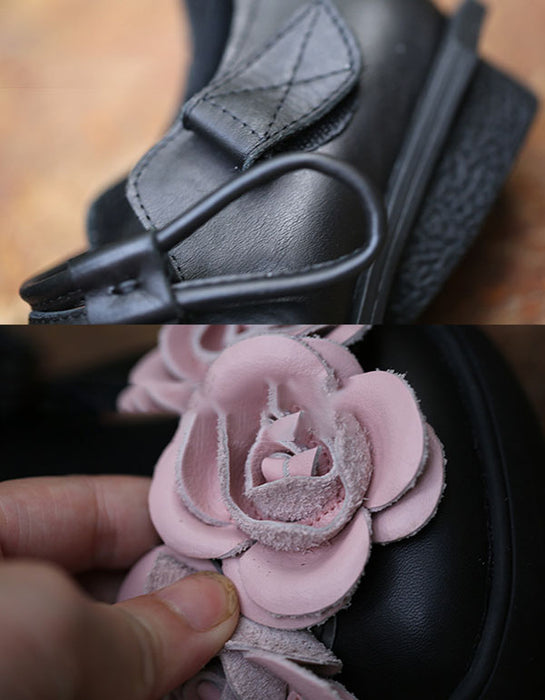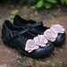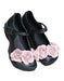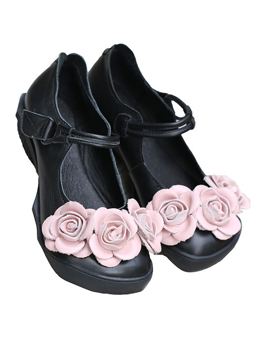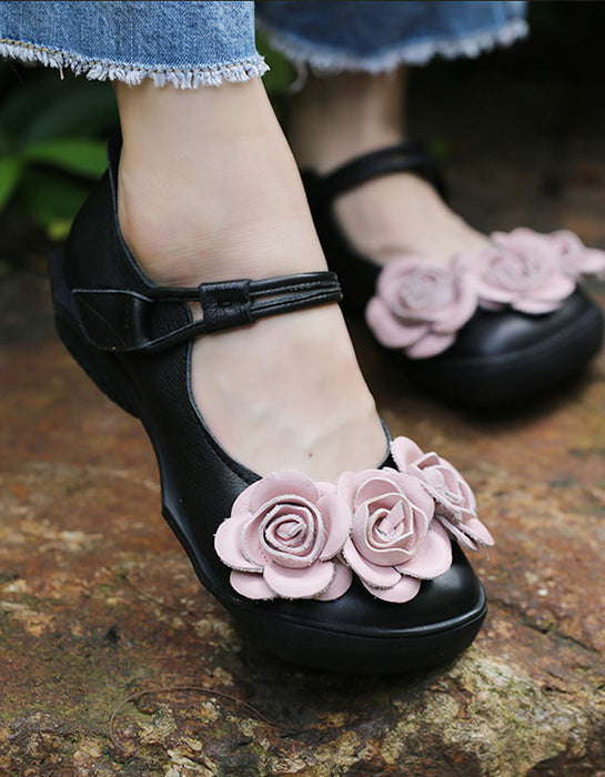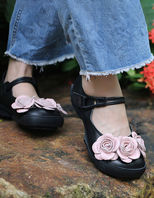 Ballerines rétro en cuir faites à la main avec fleurs noires