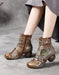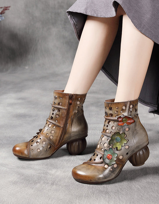 Bottes rétro creuses en cuir faites à la main avec des fleurs