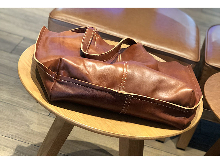 - Sac à main en cuir de vachette, sac à bandoulière rétro fait à la main, sac pour femme, sac de grande capacité, sac fourre-tout décontracté